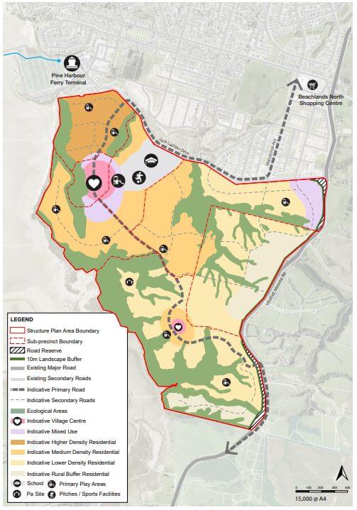 Master-planned development proposed for Beachlands South provides for new schools, coastal walkway, village centre and new housing.